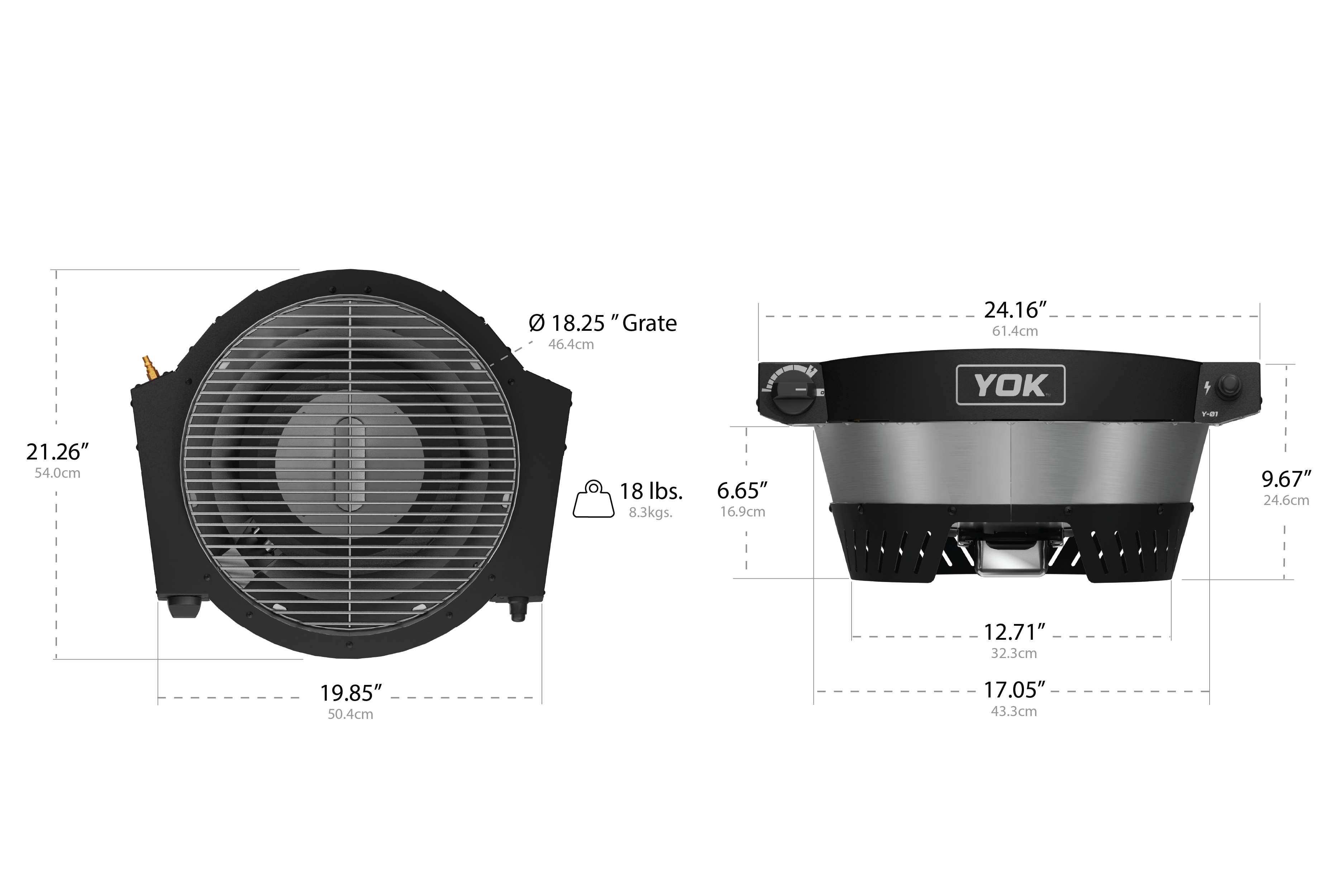 Grid Diameter: 18.25 in / 46 cm